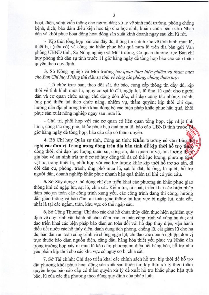 Công điện (hỏa tốc) của Chủ tịch UBND tỉnh về tập trung ứng phó, khắc phục hậu quả mưu lũ, ngập lụt sạt lở đất, lũ quét trên địa bàn