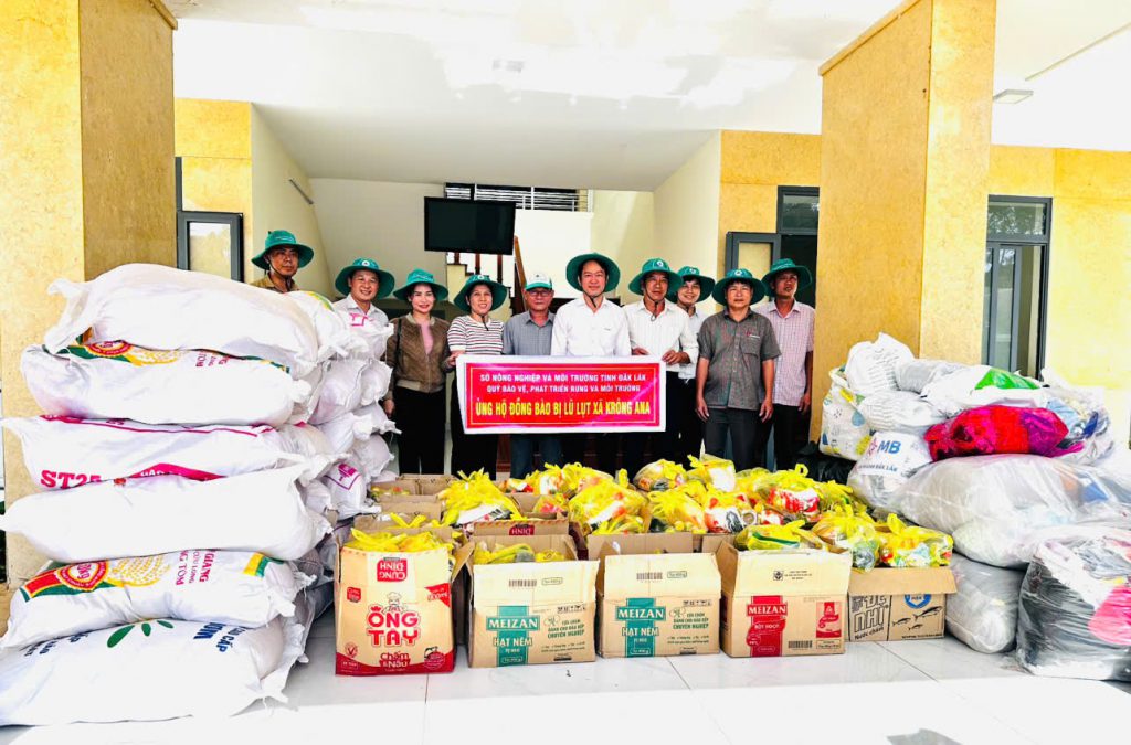 Trong những ngàytrung tuần tháng 11, mưa lớn kéo dài đã gây ngập lụt trên diện rộng tại nhiều địa phương ở tỉnh Đắk Lắk, đặc biệt là các địa phương phía đông tỉnh (tỉnh Phú Yên cũ) khiến đời sống của nhiều hộ dân lâm vào cảnh khó khăn. Đáp lời kêu gọi của UBMTTQ tỉnh, của Sở nông nghiệp và Môi trường; nhằm kịp thời chia sẻ khó khăn với đồng bào vùng lũ, Quỹ Bảo vệ, Phát triển rừng và Môi trường tỉnh Đắk Lắk đã phát động đợt vận động quyên góp huy động sự tham gia của cán bộ, người lao động trong đơn vị cùng các mạnh thường quân, doanh nghiệp, tổ chức xã hội. Chỉ sau thời gian ngắn triển khai đã nhận được sự hưởng ứng tích cực, thể hiện tinh thần đoàn kết và trách nhiệm cộng đồng. Với tinh thần “lá lành đùm lá rách”; cán bộ, người lao động Quỹ tỉnh đã tự nguyện đóng góp bằng cả vật chất lẫn tấm lòng, góp phần tạo nên nguồn lực để hỗ trợ kịp thời cho người dân đang chịu ảnh hưởng bởi thiên tai. Kết quả, Quỹ Bảo vệ, Phát triển rừng và Môi trường tỉnh Đắk Lắk đã vận động được 37 triệu đồng (bao gồm 16 triệu chuyển vào TK của UBMTTQ tỉnh, 11 triệu hỗ trợ cán bộ, người lao động Quỹ tỉnh có gia đình bị ảnh hưởng trực tiếp, 10 triệu do cán bộ Quỹ tỉnh đến thăm, tặng các hộ dân, gia đình bị ảnh hưởng), 284 phần quà, nhu yếu phẩm (bao gồm gạo, nước uống đóng chai, quần áo, nước giặt,… thực phẩm thiết yếu và rất nhiều các vật dụng phục vụ sinh hoạt hằng ngày).